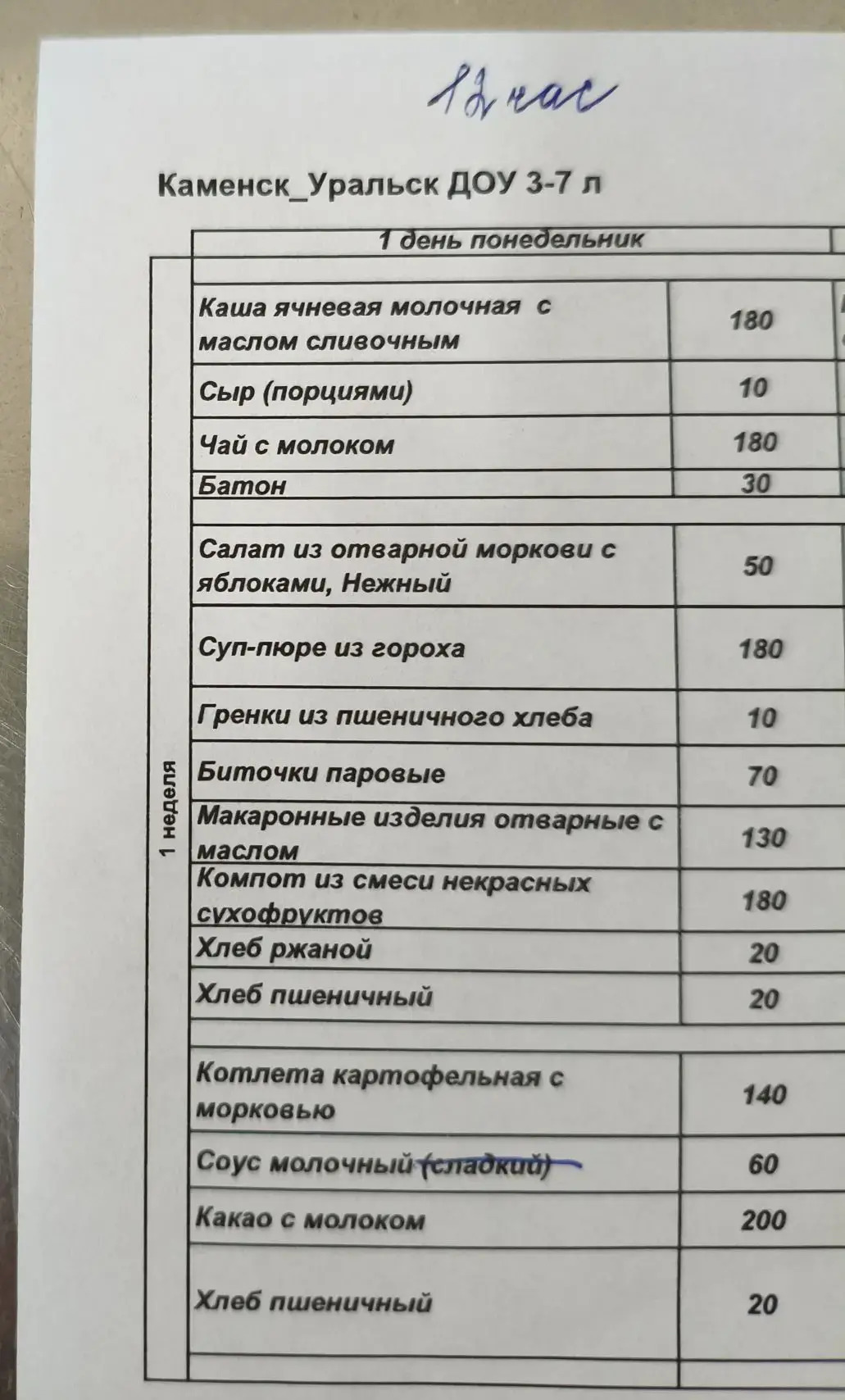 Примерное 2-х недельное меню для детей с 3 лет до 7 лет при 12-ти часовом пребывании